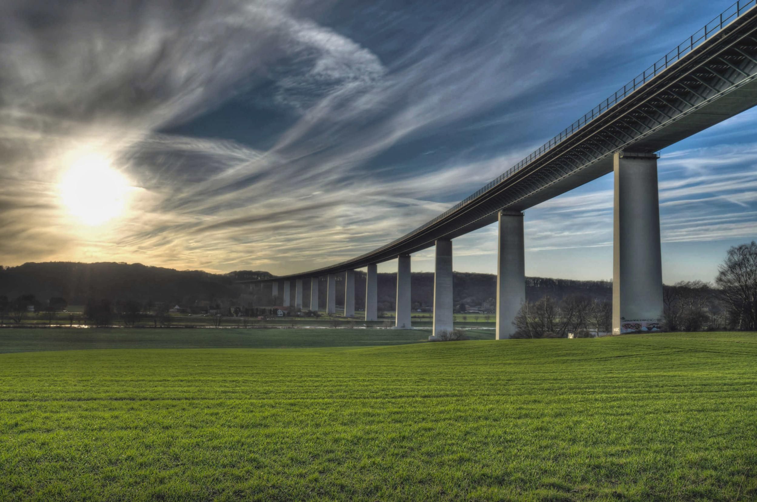 Nein nein ich meinte natürlich nicht die Brücke am Kwai, sondern die Brücke über das Ruhrtal in meiner Stadt Mülheim. Bei Spaziergängen entlang der Ruhr nicht zu übersehen verbindet sie die Städte Essen und Düsseldorf. Gebaut wurde die Ruhrtalbrücke 1963 bis 66, also in meiner Jugend. Ich kann mich noch gut daran erinnern, wenn meine Eltern mit meinen Geschwistern und mir sich vom Baufortschritt der Brücke bei Spaziergängen überzeugten. Oh wie hatte mein Vater oft dort gestanden und fassungslos in die Höhe geschaut. Dann war sie fertig und leider erlangte sie dann auch eine traurige Berühmtheit. Nicht wenige sprangen in die Tiefe und nahmen sich das Leben. So ganz nebenbei wurde auf Feiern ausgerechnet, mit welcher Geschwindigkeit man am Boden aufschlagen würde. Das Ergebnis lässt staunen den, die Aufschlaggeschwindigkeit kommt auf sage und schreibe 128,5 km/h. Traurig und nur gut, dass die Brücke später mit einem sehr hohem Geländer versehen wurde, um diesem Kapitel ein Ende zu setzen. Weitere Schicksale machten vor dem Bauwerk kein halt. Das Entführungsopfer die Tochter eines Hausmeisters wurde im Inneren versteckt gehalten. Und dann noch die vielen Unfälle der Bauarbeiter darf man leider nicht vergessen. 80.000 Autos freuen sich, jeden Tag über diese Brücke fahren zu dürfen. Natürlich sind das viel zu viele. Ein Ausbau auf sechs Spuren ist leider nicht möglich und die Pläne für eine zweite Brücke sind schon in der Schublade. Lassen wir uns überraschen, wie das schöne Ruhrtal demnächst aussieht.