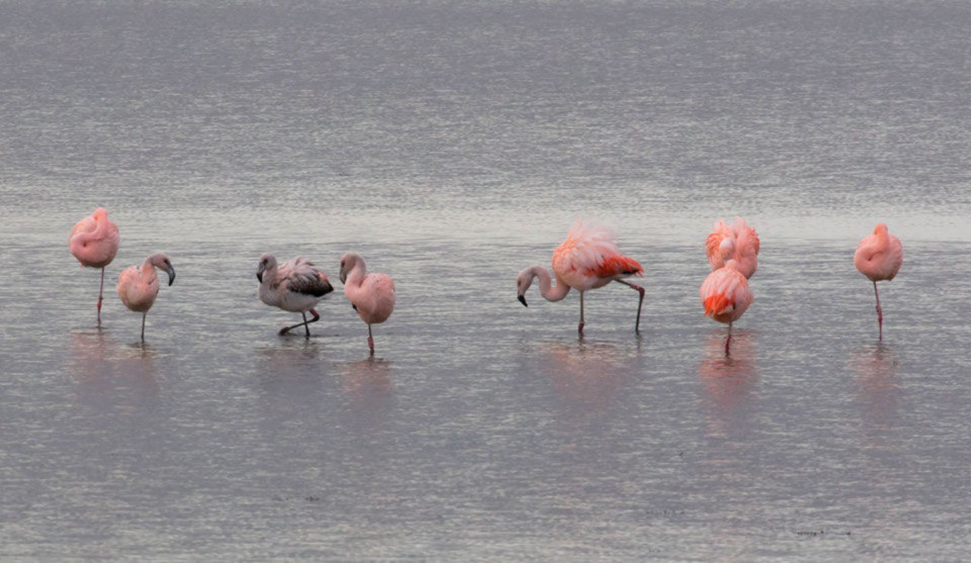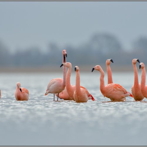 Dieses Jahr haben die Vögel unverrichteter Dinge die Brutplätze verlassen und sind wieder Richtung Ggrevelingenmeer zu ihrem Überwinterungsquartier geflattert. Hier habe ich sie heute besucht. Mit meinem Superteleobjektiv bewaffnet machte ich mich schon früh auf den Weg Richtung Battenoord. Die Frage bleibt, habe ich Glück und bekomme ich sie auch zu sehen. Vor Ort angekommen startete ich den ersten Rundumblick. Toll haben die extra für uns Besucher und Fotografen einen Beobachtungsstand gebaut. Diesen erklommen bot sich mir in weiter Ferne das rosarote Getümmel der Flamingos. „Freude für Erich“! Ja ich habe sie gesehen und wenn auch nur in der Ferne. Das Schönste, die glücklichen Gesichtszüge der Vögel ließ erkennen hier in Freiheit fühlen sie sich wohl, auch wenn sie sich auch hier ihr Futter selber suchen müssen.