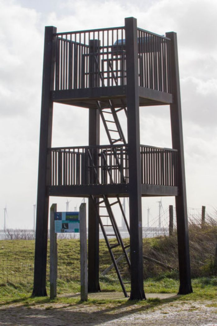 Der Aussichtsturm, von dem man die Möglichkeit hat, die Flamingos gut zu beobachten.